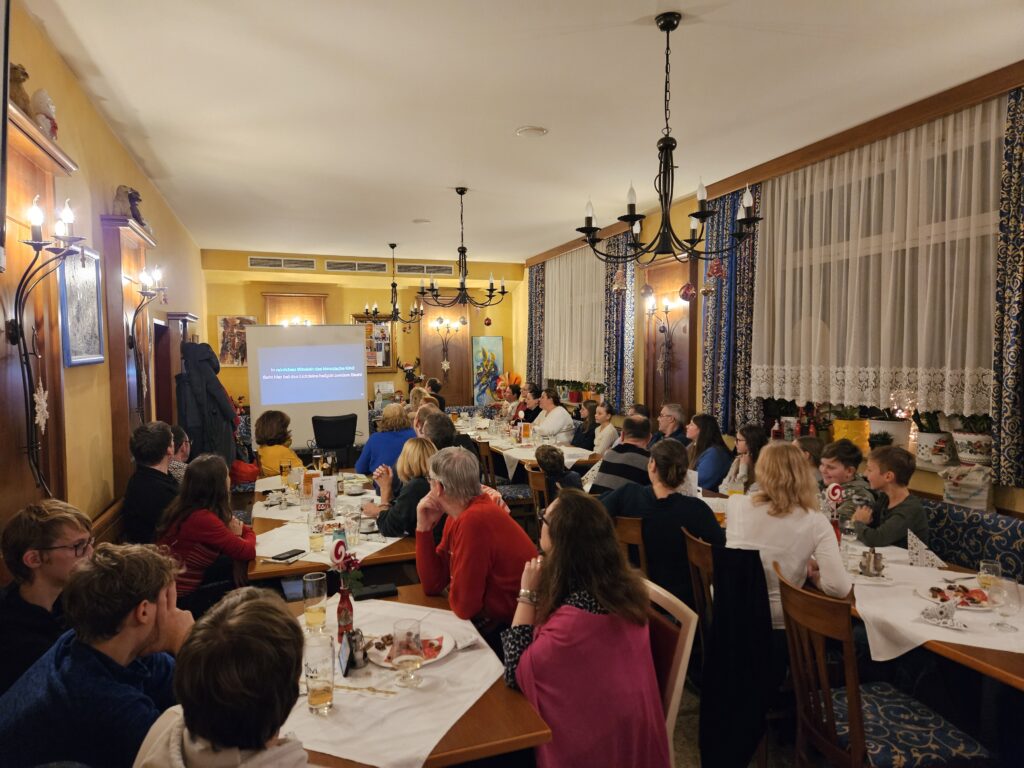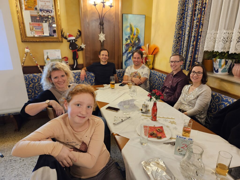 Dieses Jahr fand unsere Weihnachtsfeier im Café Schwarz statt. Wir hatten das Restaurant ganz für uns allein und den Platz mit 60 Leuten gut gefüllt!