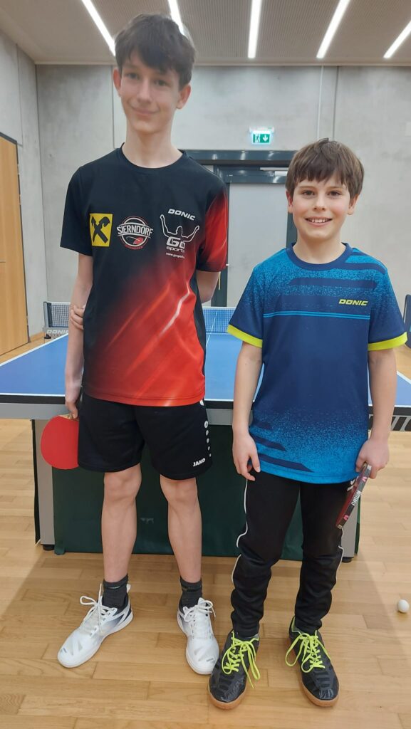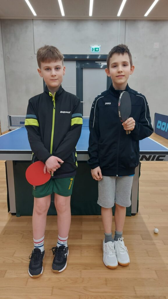 Sebastian und Jakob spielten in der Vorrundengruppe C. Sebastian spielte 2:1 und Jakob 1:3. Außerdem konnten sie auch ein Doppel für sich entscheiden. Sie landeten auf dem 2. Platz und spielten somit um die Plätze 4-6 weiter. Sebastian konnte noch 2 Siege erzielen, Jakob einen und einen Doppelsieg. Schlussendlich landeten sie auf dem 5. Platz! Für Jakob war das auch das zweite Turnier und dafür hat er sehr brav gespielt.